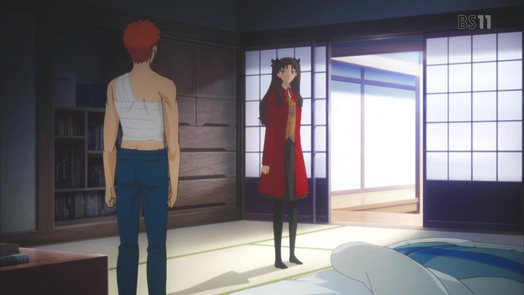 学校からの帰り、「しばらくうちで暮らすから」にさくらも藤ねえも士郎に詰め寄る。