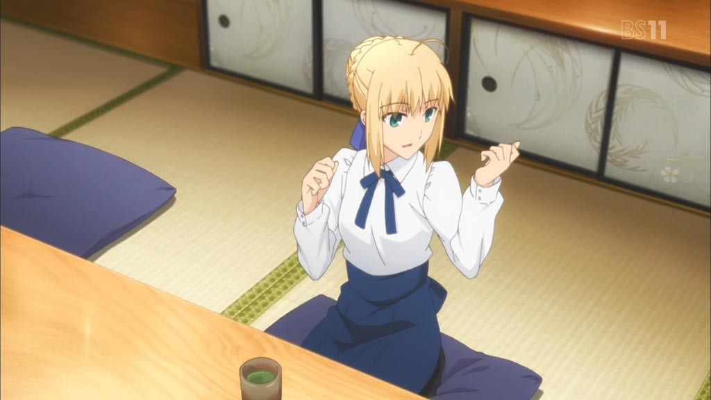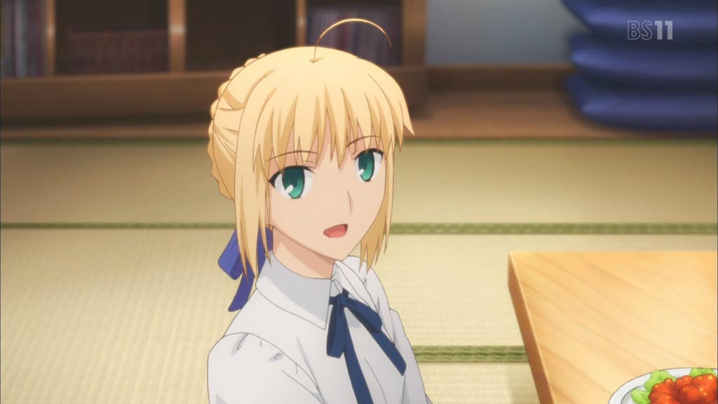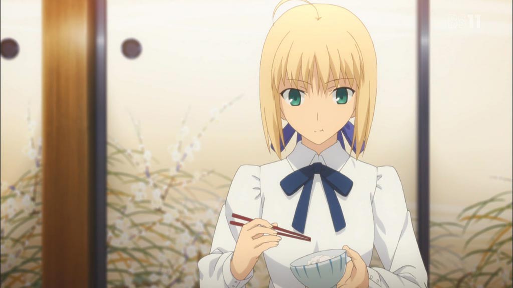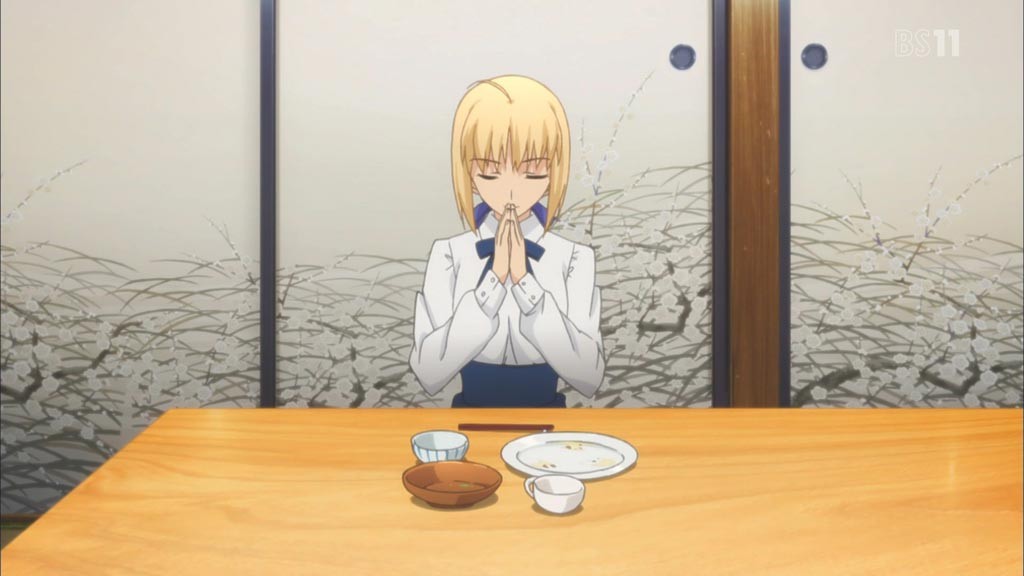 学校帰りの会話で食事時にはいつもの活気はない。 けど、セイバーはそんなこと気にせず食事をしているように見えるのは気のせいだろうか。 あの、エビの天ぷらを食すときの勢いは、まさに戦い。そう言わんばかりに噛みちぎってるよね?w