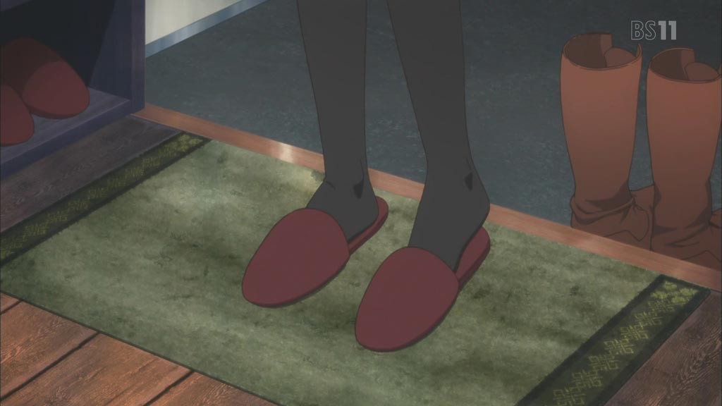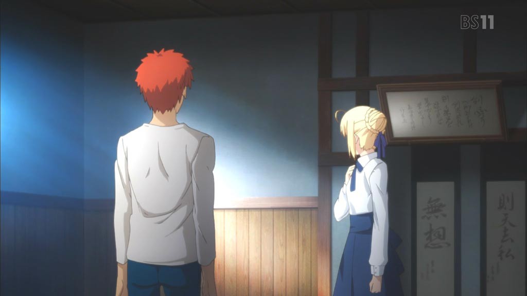 応接室でブーツを脱ぎ、スリッパに履き替えるけど、セイバーが語る葛木はやっぱりただ者じゃないのね。