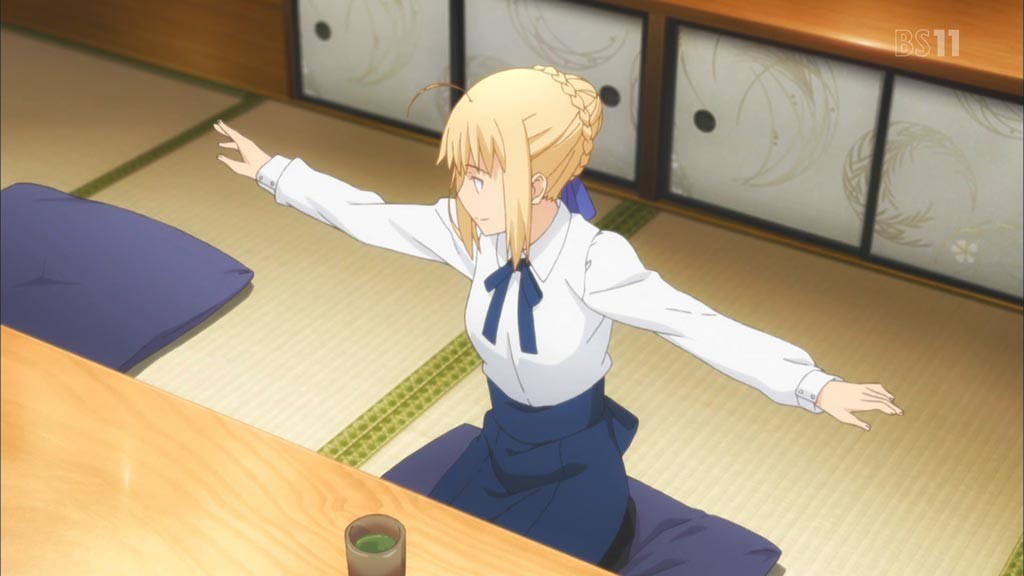 そんな士郎と藤ねえにあっけにとられている桜の横をセイバーが通り過ぎる。