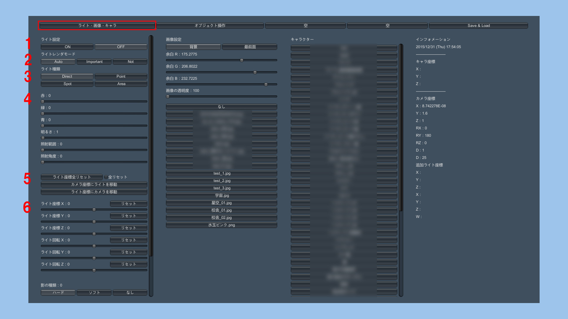 「カメラ座標にライトを移動」はまんま。ライトの設置場所を決めるのにカメラ座標を使ってます。
