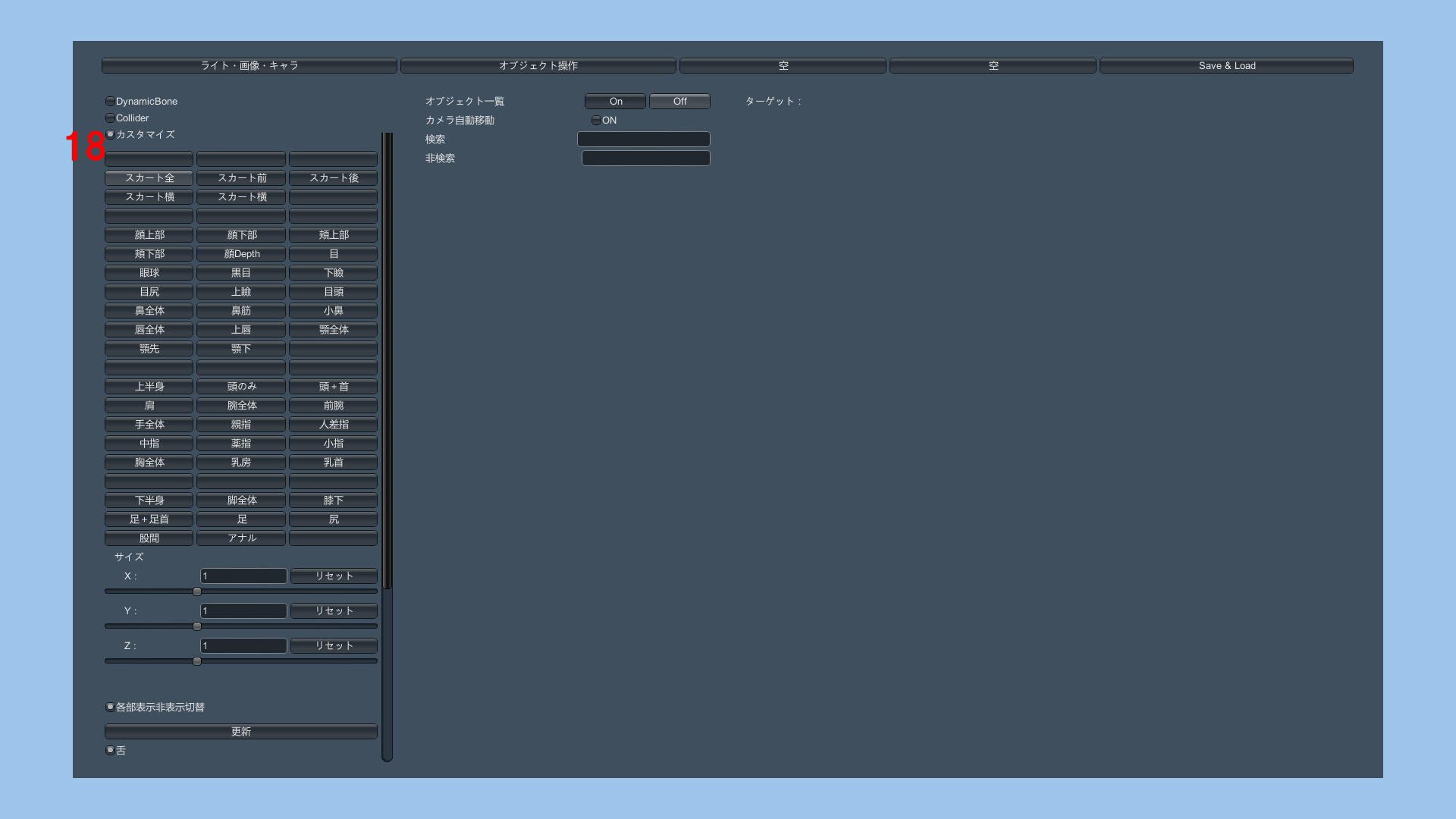 しかし、手足や頭、髪、先のDynamicBoneやColliderなどといった身体の部位や