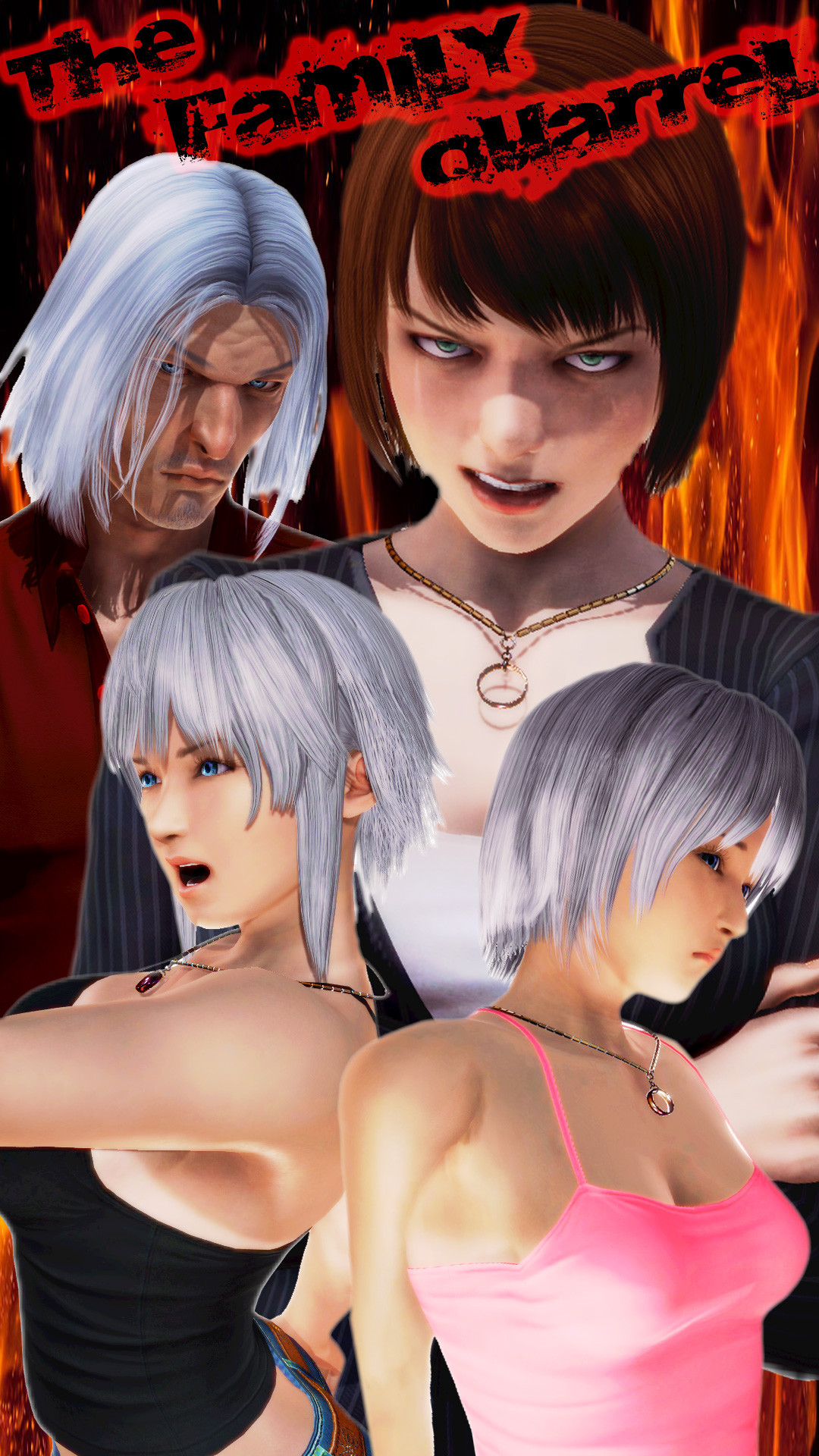 背景入れてみたけど正義vs悪という図柄でもないので、「The Family Quarrel」とか文字入れてみた。