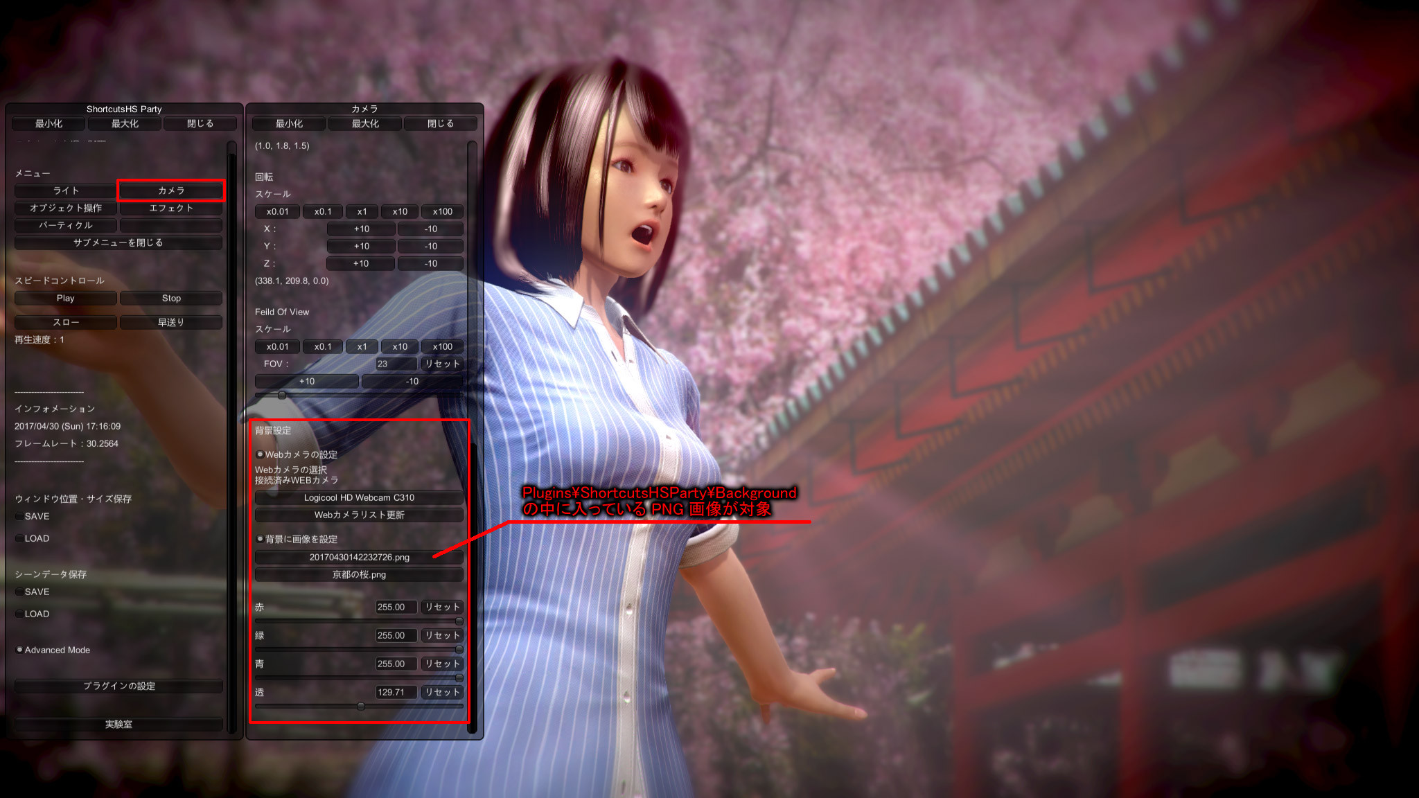 メインメニュー内の「シーンデータ保存」では、Plugins\ShortcutsHSParty配下にScene_xxxxxxx.xmlというファイルが保存されるようになっています。
