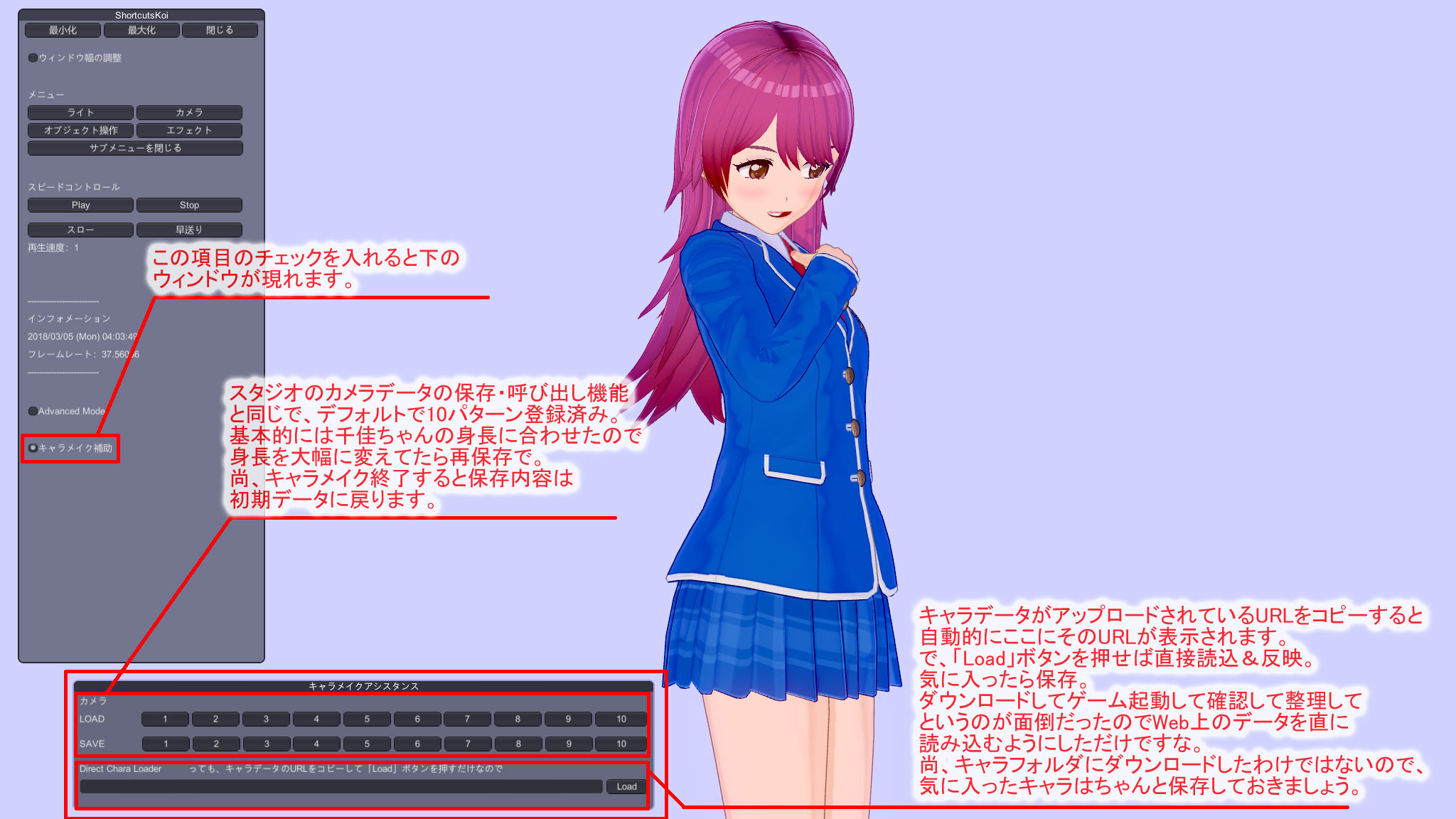 尚、このアシスタンスウィンドウは「N」キーでのオンオフではなく、「キャラメイク補助」というチェックボックスの方でオンオフされるのでご注意を。