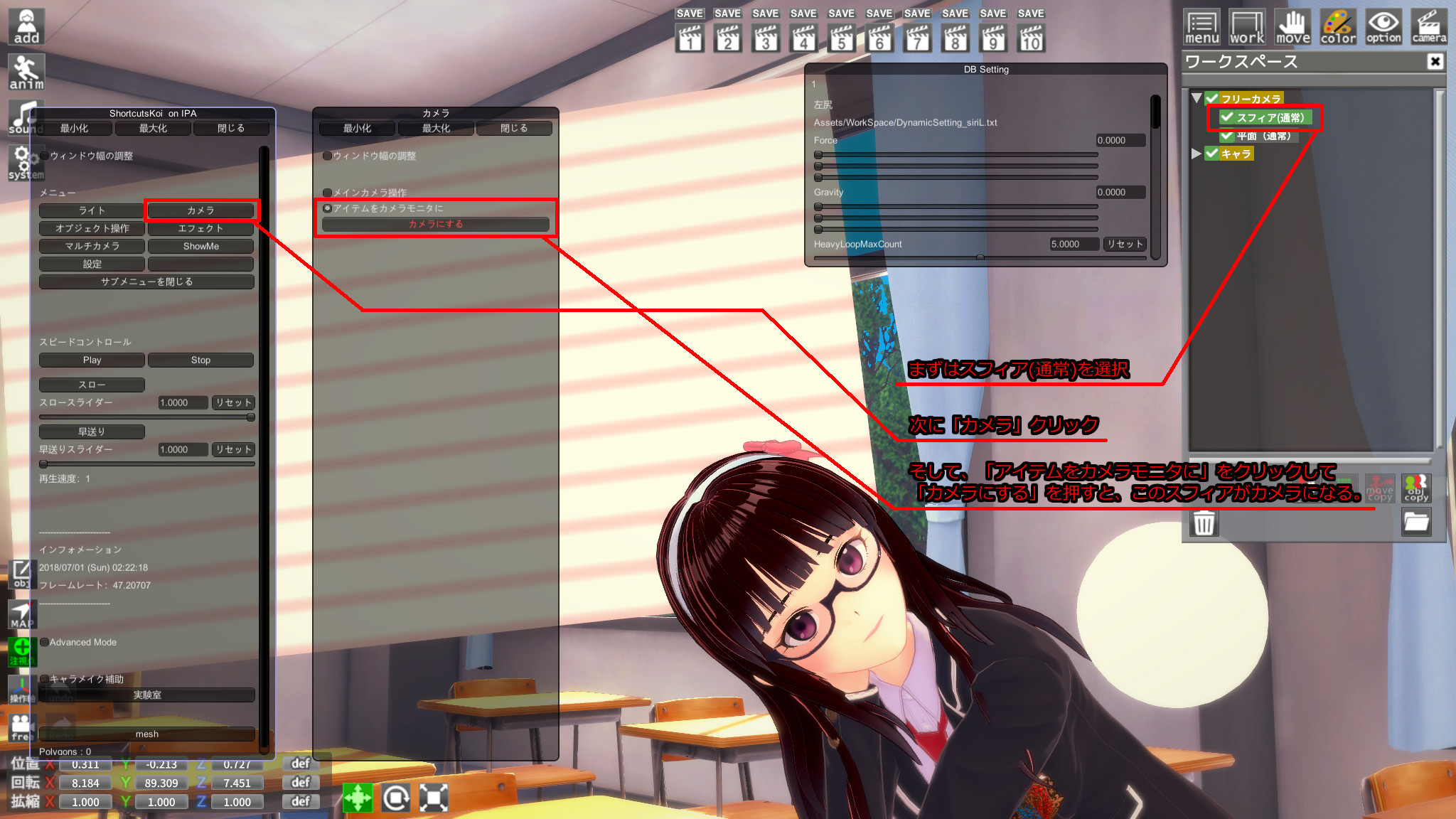 ・とりあえず、マップとキャラ、スフィア(通常)、平面(通常)を読み込んだ状態