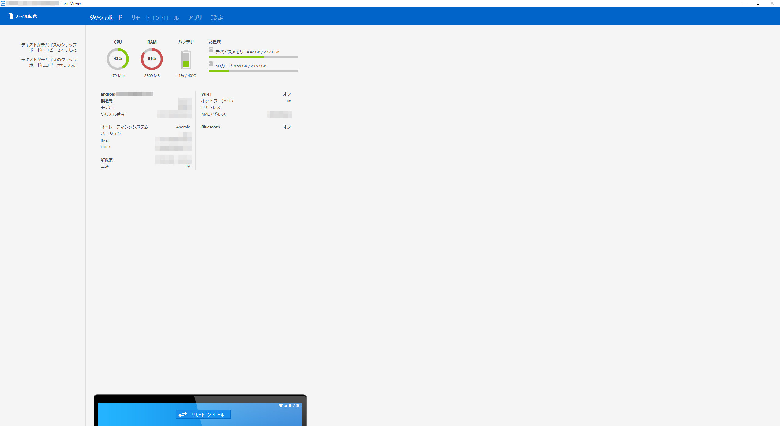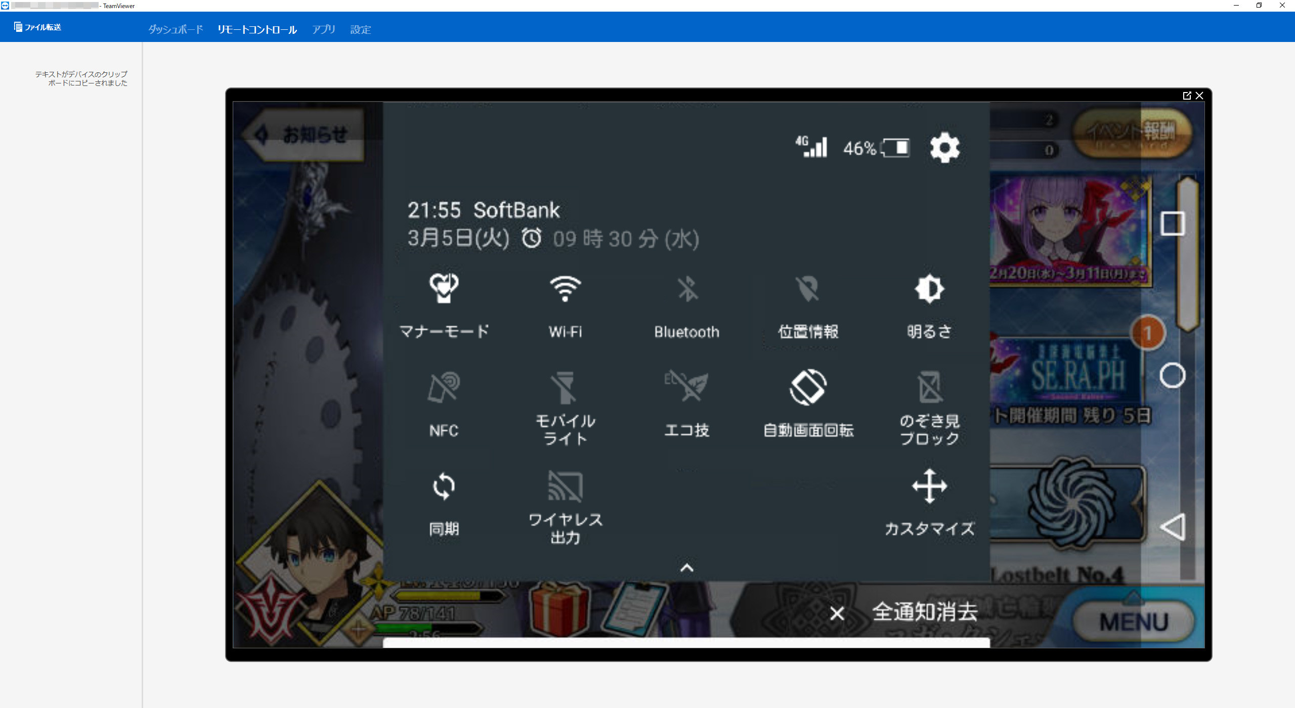 とはいえ、ファイル転送は多くの端末で使えると思うし、スマホのステータスやアプリのインストール状況などが簡単にではあるけど確認できるので、眺めていて楽しいのはこっちかw