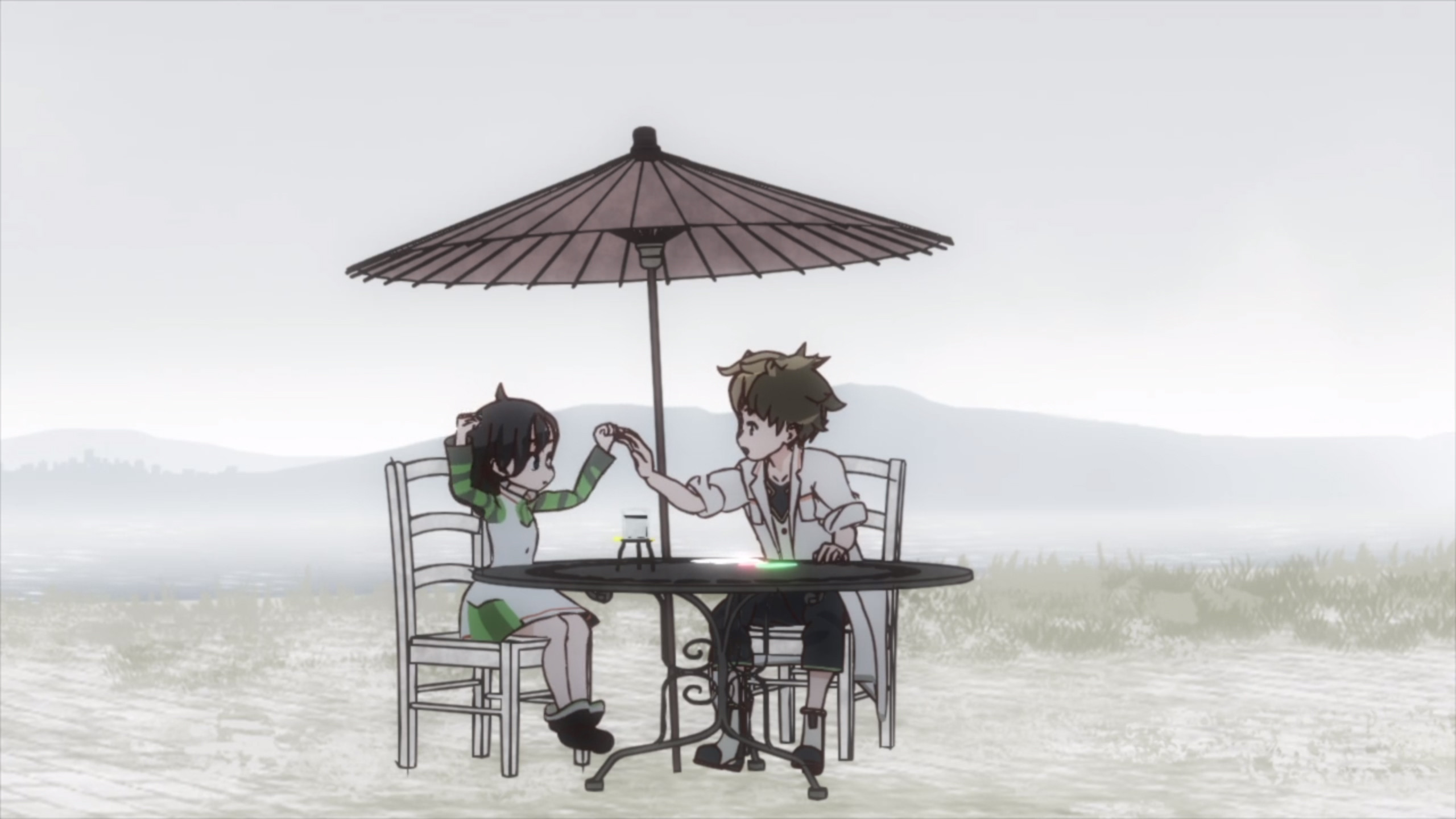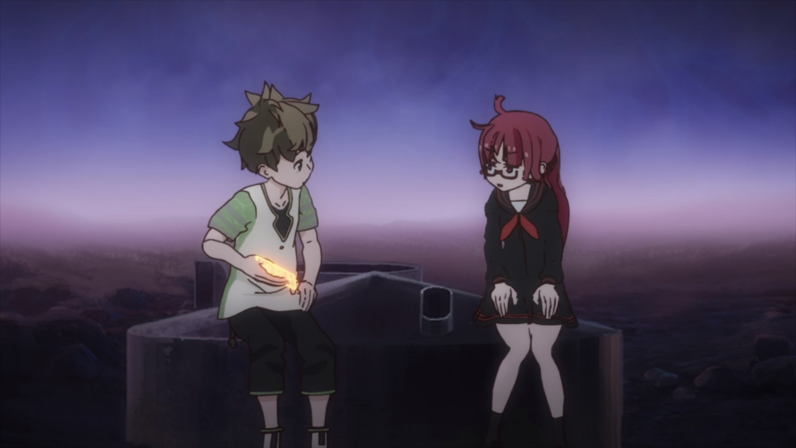 地球の上でプリントを行ってるけど、廃墟過ぎる感じからは人類は絶滅寸前という感じかと思っていたけど、りりに「知り合いの人地球にたくさんいるでしょ?」ってのは、絶滅寸前と言うことはないのか。←水が行き渡ってないからだった。あ、ヌシのことをヌシっちとかヌシぞうとか呼んでるな。