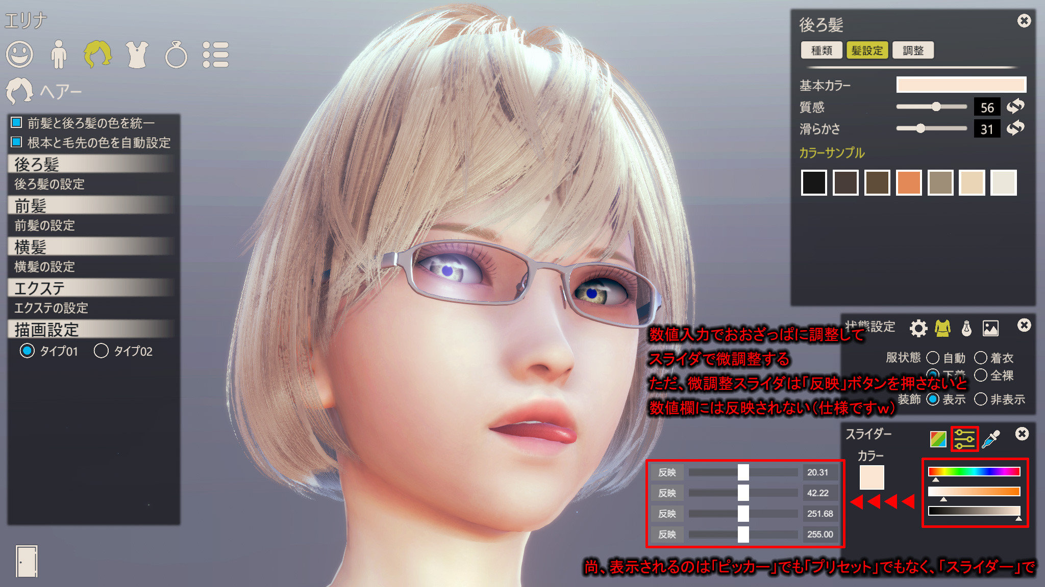 ■ カラーパレット数値入力&微調整スライダ~